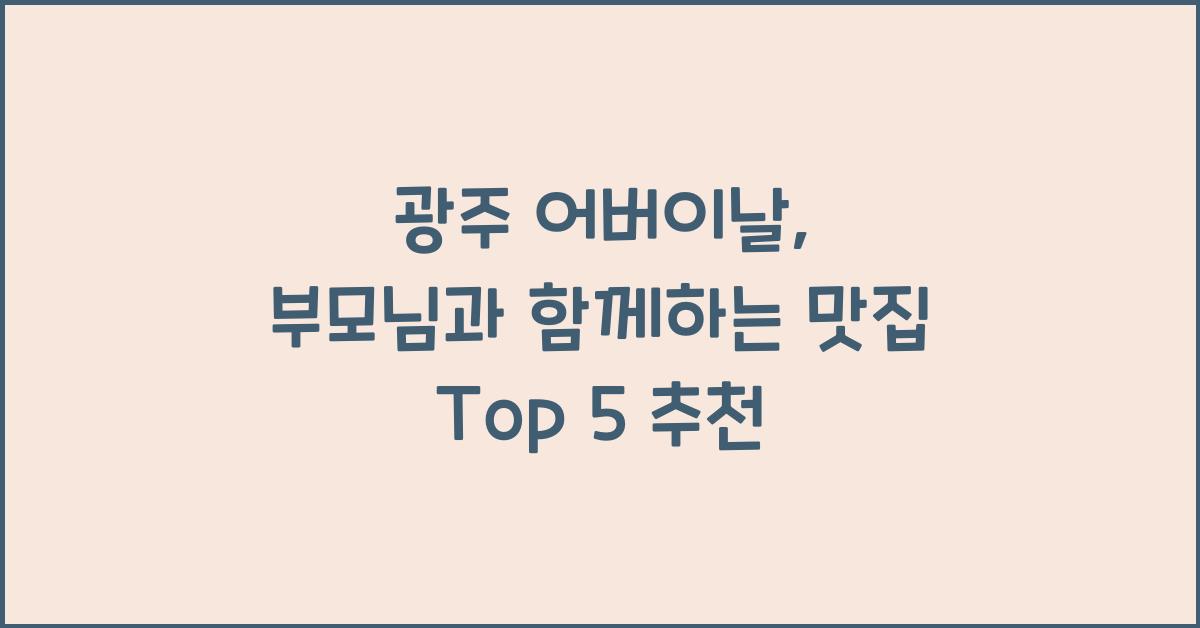 우리에게 항상 사랑과 지혜를 나눠주신 부모님에게 감사의 마음을 전하는 어버이날은 그 자체로 특별한 날입니다. 이번 어버이날에는 부모님과 함께 의미 있는 시간을 보내기 위해 맛있는 음식을 나누는 것이 어떨까요? 광주에는 다양한 맛집들이 있어 부모님과 소중한 추억을 만드는 데 더할 나위 없이 좋은 장소들이 많이 있습니다. 특히 오늘은, 광주 어버이날, 부모님과 함께 맛있는 식사 Top 5 추천 리스트를 통해 어떠한 식당들이 있는지 알아보겠습니다.